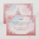 Elevem seus detalhes de casamento com este Cartão de Gabinete de Detalhes do Contato de Fairytale. A frente, enfeitada com uma delicada armação floral rosa e nuvens sonhadoras, define o tom para romance. Sacudir ao fundo para descobrir uma ilustração do castelo de conto de fadas, enquadrando perfeitamente os detalhes essenciais do casamento.