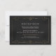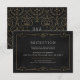 Elegância vintage em moldura ornamentada com desenho de redemoinho em cor dourada sobre fundo preto desgastado. Padrão damasco com desenho de monograma no verso, moderno, elegante e sofisticado, perfeito para casamento vintage, casamento art déco durante todo o ano. Cor do fundo editável para combinar com as cores do tema do seu casamento. Personalize seu próprio cartão de recepção para o conjunto de convite de casamento.
