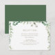 Um cartão de informação de recepção de casamento com folhagem de eucalipto. você pode personalizar o texto e a cor para corresponder ao seu próprio tema de casamento.