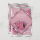 RSVP para Convite Casamento Elegante Rosa Prata. Visual vintage com moldura prateada e buquê rosa, convite de casamento tradicional, Veja os produtos correspondentes abaixo!
