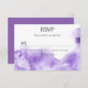 A Ultra Violet Watercolor Apresenta RSVP. Ultra Violet é a cor do ano de 2018. O modelo é fácil de personalizar se você optar por alterar o texto. A parte de trás da carta é um verde-menta sólido. Há um convite de casamento. Se você quiser o design em algo não mostrado, entre em contato comigo através da minha loja ou me envie um e-mail para shutterbug600@yahoo.com.