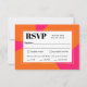Um cartão RSVP de casamento ousado e bonito com um retrorreflector moderno em um esquema de cores vibrantes, rosa-quente e laranja. Esta placa de resposta colorida tem uma aparência de designer com formas laranja brilhantes arredondadas sobre um fundo rosa quente. O modelo de texto no tipo de nódoa contemporânea encara com uma vibração retrorreflectora e carregar o tema com beleza. O modelo de texto inclui opções de seleção de refeições para seus convidados que você pode editar com suas entradas.