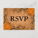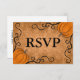 Meu simples desenho de uma abóbora nos cantos de um bonito fundo castanho-claro e cinza com espirais pretas em placas RSVP. Todo o texto é personalizável.