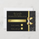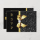 Cartões rsvp personalizados elegantes, preto e dourados, com lindas sequências de imagens pretas e brilhantes, joias, padrões de gems, arcos e fitas impressas com ouro brilhante e fofinho, e bonito diamantes digitais que abanam joias em um fundo preto clássico. NOTA: Estes são gráficos impressos planos - sem peças levantadas. Essas placas de resposta planas elegantes, glamourosas, reluzentes e glamourosas são decoradas/impressas em ambos os lados. Belo, chique, moda, rsvps modernos para qualquer evento:- casamentos, chás de fraldas, chás de panela, festas de formatura, festas de aniversario de mulheres, doces 16 festas, celebrações da quinceanera etc. O texto, a fonte e a cor da fonte podem ser personalizados. Se precisar de ajuda para personalizar seu produto, entre em contato comigo através da minha loja. Ficarei feliz em ajudar. Tenho produtos correspondentes na minha loja.