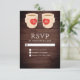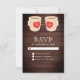 Cartão RSVP Elegante com lindas canecas monográficas de café com tipografia moderna contra um fundo de madeira de celeiro.
