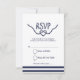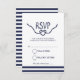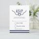 Placa RSVP com uma fonte caligráfica encantadora em azul marinho sobre fundo branco.