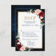 Marinho de cartão RSVP de casamento floral cor-de-rosa com modelo vermelho embebido em água, com Dourado quadro e ouro com folhagem botânica verde e folhas de eucalipto em fundo azul marinho. Esta design fácil de personalizar pode combinar facilmente com as cores do casamento, estilos e temas e é uma escolha perfeita para o meio do outono ou casamentos no inverno. Você pode encontrar mais designs correspondentes na minha loja ou entrar em contato comigo se precisar de ajuda na personalização do design.