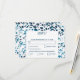 Um belo design de padrão abstrato moderno de mosaico Terrazzo em cores azul marinho e azul claro. Esta design também apresenta um arranjo moderno das iniciais personalizadas da noiva e do noivo no verso. O reverso imita a frente. Essa combinação simples de cores cria um estilo sofisticado, moderno e chic. Design de cartão de resposta RSVP de casamento elegante com elementos modernos. A configuração simples da tipografia lhe dá um estilo distinto. Os convites de casamento e outros artigos de papelaria também estão disponíveis.