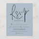 Um valor para o alternativo do ORÇAMENTO em tamanho menor de 4,5 x 5,6" de semirbrilho de 110 lbs, que é de espessura semelhante a um cartão postal (no entanto, não é adequado para uso como cartão postal). POR FAVOR, OBSERVE QUE HÁ UM convite por folha. Script de Orçamento Dusty Blue Wedding RSVP Uma tipografia de na moda em preto para o cabeçalho principal RSVP complementando o resto do texto que você pode personalizar facilmente.