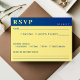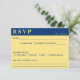 Cartão rsvp de casamento azul escuro e amarelo.
