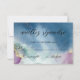 Cartão de RSVP de casamento celestial elegante com todas as seções de texto personalizáveis. Texto em francês com capacidade de mudar conforme necessário. Esta mesma placa RSVP também está disponível em inglês. Design com um fundo impermeável de aquarela com manchas de aquarela numa mistura artística de matizes roxas, magenta, fuchsia, lacas, turquesas, aqua, azuis e azuis marinho com elementos de ouro. Parte de nossa coleção "Jardim Místico" com uma variedade de produtos de coordenação disponíveis.