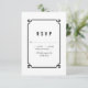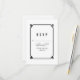 Cartão RSVP de Casamento Deco Simples e minimalista com uma moderna fronteira ornamental deco art. Este cartão de resposta clássico e elegante é fácil de personalizar com seus detalhes de casamento. Localize mais opções de personalização clicando em Personalizar.