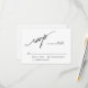 Simples estilo clássico faz com que este cartão RSVP de casamento seja uma escolha popular em papelaria de casamento. O texto "rsvp" do roteiro de caligrafia elegante adiciona encanto moderno ao design minimalista limpo. Tudo o que você precisa fazer é personalizar o modelo de texto com a data de resposta necessária.