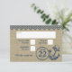 Cartão de resposta de estilo rústico com falso burlap e âncora rústica azul-marinho e design xadrez ou chevron para complementar o convite. Design de âncora com corda e a aparência de burlap neste convite de casamento de praia único.