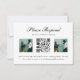 Este moderno cartão de resposta do casamento apresenta um lugar para o seu código QR para que os convidados possam facilmente consultar o seu site de casamento. A frente apresenta uma grade de fotos única e um design simples e limpo. A parte de trás é uma foto de cheio para sua foto de noivado ou outra foto favorita.