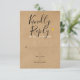 Um cartão de RSVP elegante com uma tipografia moderna e sofisticada em um fundo kraft rústico que pode ser personalizado com as suas informações de RSVP especiais. O verso apresenta um confete de corações dourados elegante e sofisticado em um fundo kraft rústico. Concebido por Thisisnotme©