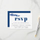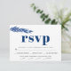 Ramificação Eucalyptus em placa RSVP de casamento no inverno azul com opção de refeição. Um design para o seu casamento outono com um ramo de folhas de eucalipto. O dorso é de cor azul sólida.
