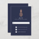 Estas cartas de RSVP de na moda mostram um abacaxi de rosa de ouro falso em um fundo azul de meia-noite.