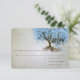 Pó claro Árvore de Folha de Coração Azul, Árvore Mágica de Amor Árvore Real de Folha de Coração Azul no Papel Metálico Tonelado de Prata legal de Tea e alguns designs giros e giros para melhorar as raízes do amor neste único convite para casamento em floresta..