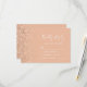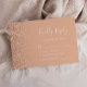 A borda esquerda desta elegante placa de caixa RSVP de casamento moderna apresenta uma borda falsa de pêssego. O texto personalizável combina a escrita manual branca e as fontes de impressão em um fundo de pêssego. O verso apresenta um design de brilho de pêssego correspondente.