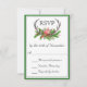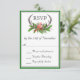 Com o estilo rústico encantador do feitiço, este design de placa RSVP de casamento apresenta cornos cervos embelezados lindamente com vergreens e bagas de inverno e um cardeal vermelho cercado por uma borda verde escura. Inclua a data de resposta RSVP necessária no lugar do texto de exemplo mostrado.