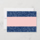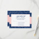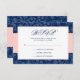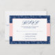 Cartão de resposta de RSVP de casamento azul e rosa-claro com marinho elegante.