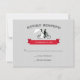 Cartões Rsvp de casamento de bicicleta Tandem com noiva e noiva andando de bicicleta Tandem. Tipografia de safra e faixa vermelha em fundo de cinza. Consiga os convites de casamento de bicicleta tandem.