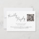 Este cartão de cercado RSVP de casamento moderno e minimalista apresenta um roteiro elegante. Ele brinca com a simplicidade de um design de tipografia preto e branco. Você pode adicionar as informações do seu site de casamento, bem como um código QR para seus convidados digitalizarem. É a escolha perfeita para casais que apreciam elegância limpa e moderna. Para qualquer necessidade especial de design, fique à vontade para entrar em contato diretamente com o designer, enviando um e-mail para choosehappystudio@yahoo.com
