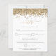 Um valor para o alternativo do ORÇAMENTO em tamanho menor de 4,5 x 5,6" de semirbrilho de 110 lbs, que é de espessura semelhante a um cartão postal (no entanto, não é adequado para uso como cartão postal). POR FAVOR, OBSERVE QUE HÁ UM convite por folha. RSVP de Casamento de Script de Código QR do Glitter Dourado de Orçamento. Uma borda falsa com brilho na parte superior de ambos os lados com um script elegante com traços para o cabeçalho. Troque seu código QR para a página de resposta do site do casamento para obter uma opção conveniente de resposta do alternativo para seus convidados. Para criar um código QR, pesquise online "gerar um código QR"