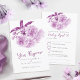 O RSVP apresenta uma arte de pintura botânica a aquarela florada em massa roxa. Edite este convite de RSVP com seus nomes, datas e texto. Belo design de arte floral ideal para um casamento temático de primavera de mauve roxo. © Original, pintado à mão, pintado à aquarela e design por Sarah Trett para www.mylittleedenweddings.com