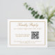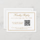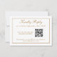 Simples e elegante, este cartão RSVP de casamento tem uma borda fina de linha de ouro na frente e no verso e texto dourado correspondente que pode ser editado conforme desejar. Ele usa a tecnologia moderna de Código QR para permitir que você forneça um link para o seu site de casamento para que seus convidados postem suas respostas.