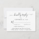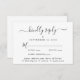 Cartão RSVP de casamento elegante com "gentilmente responda" em um roteiro de na moda, com alternâncias, tipografia simples e moderna, opções personalizadas de entrada de menu e seus nomes unidos por um coração no verso.