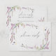 Bonito e delicado, este convite de casamento para flores silvestres RSVP apresenta design de carta de resposta RSVP apresenta delicadas flores de aquarelas pintadas manualmente em tons de roxo, lilás e lavanda, com tipografia escrita escrita à mão em uma mão falsa feita de textura de papel fino. A parte traseira do RSVP permite que seus convidados respondam e permite quatro seleções de entrada para o serviço de refeições distribuídas. PARA REMOVER AS OPÇÕES DE REFEIÇÕES, veja aqui o nosso vídeo útil: https://youtu.be/ZGpeldQgxoE Entre em contato com o designer para obter produtos correspondentes e veja aqui todo o pacote de casamento: https://www.zazzle.com/collections/elegant_modern_wildflower_watercolor_art_paper-119612444411079619. Copyright Anastasia Surridge for Elegant Invites, todos os direitos reservados.