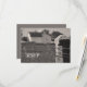Personalize o charmoso e casual Cartão de Resposta RSVP de Casamento de Fazenda do País com a data de resposta do casamento. Esta placa nupcial rpv.p. do tema de rancho personalizado informal e relaxada apresenta uma fotografia de fazenda de tom de sépia quinta de um celeiro branco e um posto de cerca de cimento com arame farpado.