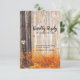 Cartões de RSVP de casamento de outono country com uma floresta de outono rústica com folhas vermelhas, laranja e douradas, árvores de bétula prateada, um coração esculpido de conto de fadas na árvore com as iniciais dos noivos, e um modelo de resposta de casamento editável elegante.
