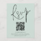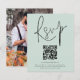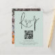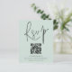 Um valor para o alternativo do ORÇAMENTO em tamanho menor de 4,5 x 5,6" de semirbrilho de 110 lbs, que é de espessura semelhante a um cartão postal (no entanto, não é adequado para uso como cartão postal). POR FAVOR, OBSERVE QUE HÁ UM convite por folha. RSVP de Fotos de Casamento de Script de Código QR da Mint Um gabinete de opções conveniente para pedir aos seus convidados que digitalizem o seu código QR para o seu site de casamento para RSVP. Uma tipografia de na moda set em preto para o título principal RSVP complementando o resto do texto que você pode personalizar facilmente.