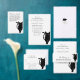Estas cartas de RSVP são perfeitas para qualquer casal planejando uma celebração romântica e moderna de casamento. A design apresenta um gato preto desenhado por uma mão branca sobre um fundo branco limpo. O design simples pode ser personalizado para se adequar ao seu evento especial e seria a peça perfeita para qualquer festa temática elegante e chique, incluindo chás de panela, noivados, chás de casamento, festas de aniversário e muito, muito mais.