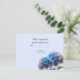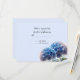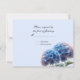 Aqui está um cartão de resposta de casamento que exude elegância e tranquilidade, com seu pano de fundo azul suave oferecendo uma canvas serena para seus detalhes de RSVP. Hidrópias azuis claras, beijadas pela luz do sol do ouro, graciosamente adoram o canto, acrescentando um toque de beleza natural e calor ao design. A delicada interação de cores cria um encantador contraste que melhora o sentimento romântico e convidativo da carta. Este rsvp dá um toque de sofisticação floral.