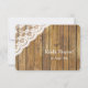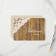 Este atraente cartão de resposta do casamento apresenta um boné branco de canto de um lugar contra um fundo de madeira cheia de luz. Seu texto personalizado está em branco na frente. A parte traseira do cartão é a luz, para facilitar a marcação do seu entrevistado. Campos de texto adicionais em dourado médio permitem que você personalize toda a parte traseira da placa. Se você não precisar de um campo, você pode facilmente excluí-lo limpando o campo. Este cartão combina com os convites de Casamento Floral de Madeira de Lace Sunflower em nossa loja.