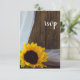 Personalize a placa de resposta RSVP de casamento RSVP de girassol amarelo e girassol com a vírgula rustica do país com a data de resposta específica do seu casamento. Estes cartões casuais, mas clássicos, de rancho personalizado, de casamento r.s.v.p. apresentam uma fotografia floral, pintada digitalmente, de uma flor de girassol amarela, com um véu branco de brasa, com um fundo de madeira castanho. Inpo perfeito ou ideia para uma cerimônia e recepção de casamentos informais de verão ou quedas.