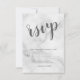 Clássico Elegante White Marble Invitation Suite : RSVP Card com título em fonte moderna de script de cinza com detalhes em fonte sans serif moderna de cinza em fundo de mármore branco.