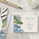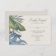 Convide seus convidados para o paraíso por um dia com esta elegante design de palmeiras tropicais. Apresentando um spray de folhas tropicais sorteadas em azuis serenos e verdes e um padrão de ratos estilizados nas costas, essa design incorpora um dia de brisa debaixo das palmeiras. Perfeito para seu caso casual de praia ou celebração de destino nos trópicos. Compre a coleção hoje para o papel de carta correspondente, e vá para o dia perfeito!
