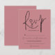 Um valor para o alternativo do ORÇAMENTO em tamanho menor de 4,5 x 5,6" de semirbrilho de 110 lbs, que é de espessura semelhante a um cartão postal (no entanto, não é adequado para uso como cartão postal). POR FAVOR, OBSERVE QUE HÁ UM convite por folha. RSVP de Casamento de Rosa Dusty do Script de Orçamento. Uma tipografia de na moda set em preto para o título principal RSVP complementando o resto do texto que você pode personalizar facilmente.