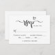 Os cartões RSVP de casamento da caligrafia moderna do coração do boho apresentam um design de tipografia na moda. Texto personalizado mínimo que pode ser personalizado com a data de vencimento do RSVP em preto e branco. O design inclui uma linha para o(s) nome(s) de convidado, participação em eventos, escolha de refeições e o número total de convidados presentes.