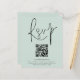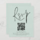 Um valor para o alternativo do ORÇAMENTO em tamanho menor de 4,5 x 5,6" de semirbrilho de 110 lbs, que é de espessura semelhante a um cartão postal (no entanto, não é adequado para uso como cartão postal). POR FAVOR, OBSERVE QUE HÁ UM convite por folha. RSVP de Casamento de Script de Código QR da Mint Um gabinete de opções conveniente para pedir aos seus convidados que digitalizem o seu código QR para o seu site de casamento para RSVP. Uma tipografia de na moda set em preto para o título principal RSVP complementando o resto do texto que você pode personalizar facilmente.