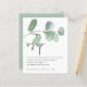 Gabinete de RSVP de Casamento de Código QR de Script Elegante Eucalyptus Elegante. Um alternativo de 4,5 pol x 5,6 pol com preço inferior. Disponível em um STOCK DE CARTÃO SEMI-GLOSS 110 lb, que é a opção padrão (mais espesso para convites), OU um STOCK de PAPEL THINNER FINISH 80 lb FINISH (ideal para gabinetes). Adicionar o seu código QR ao seu site de casamento no verso faz com que esta seja uma opção conveniente para os seus convidados para o RSVP. Você pode criar códigos QR gratuitamente on-line. Basta pesquisar "Criador de código QR" e muitas opções surgem para criar gratuitamente. O eucalipto verde artístico flui no topo e um elegante estilo de conjunto informal para o cabeçalho com todos os detalhes estilmente pequenos.