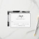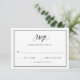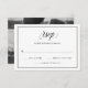 Esta elegante e moderna carta RSVP de casamento mostra uma elegante tipografia negra em um fundo branco, com uma borda preta e sua foto no verso.