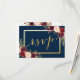 Belo cartão de casamento personalizado. Design de cor da água floral vermelha e folha de ouro falso rolo rolo, rsvp, escrita à mão sobre fundo azul marinho. Outras cores disponíveis em www.zazzle.com/monogramgallery. Um roteiro simples, mas versátil, escrito à mão para casamentos ou outras ocasiões especiais, como jantas de ensaio, chás de casais, comemorações de aniversário de casamento. Folha de ouro é um efeito fotográfico impresso.