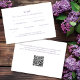 Este cartão parece bonito com o conjunto de produtos coordenados para o "Convite de Casamento de Lavandas Monogramas Crest." Personalize as informações com todos os detalhes do seu evento especial. Não se esqueça de mudar o endereço da Web para o código QR!