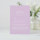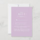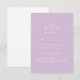 Cartão de resposta RSVP de Casamento Minimalista Simples Lavanda. Jantar e dançar. Site.